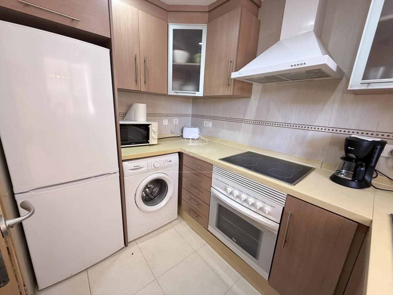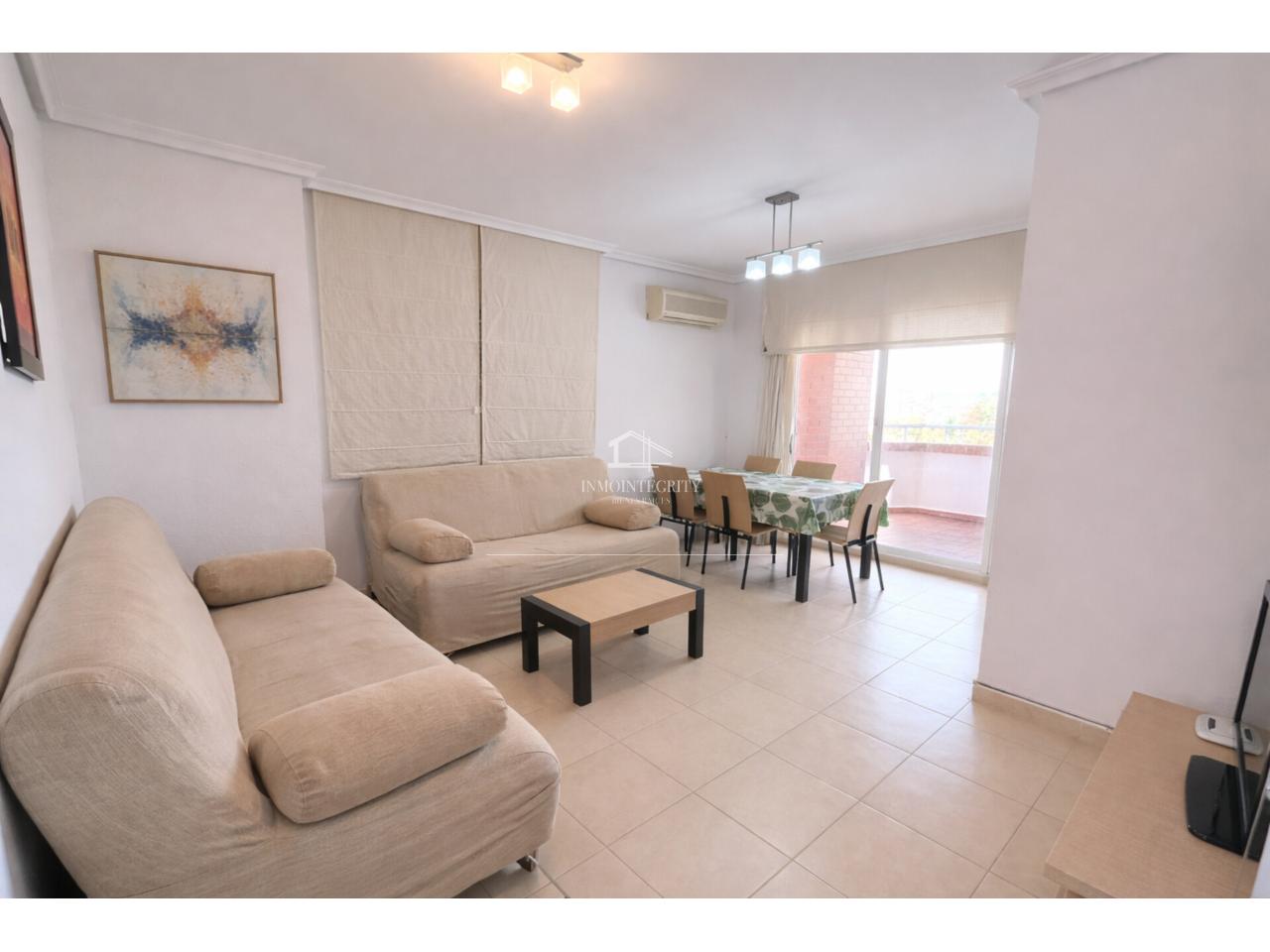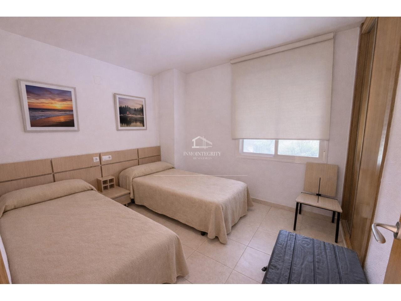 La distribución consta de tres dormitorios: dos habitaciones individuales y una espaciosa suite principal con baño privado, además de un segundo baño completo. El apartamento dispone de aire acondicionado frío/calor para garantizar el máximo confort durante todo el año.